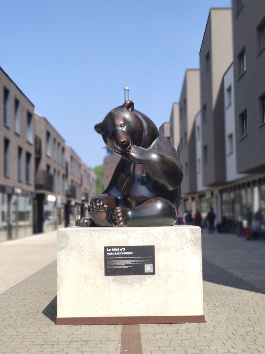 L’ours « Le Miel n° 3 » est une sculpture monumentale en bronze..